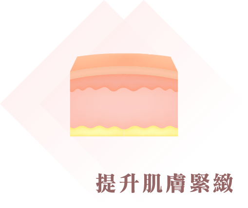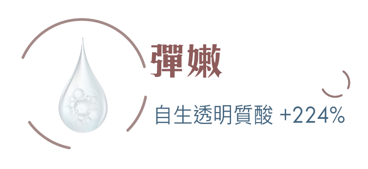 - 激發纖維母細胞自生透明質酸,膠原和彈力蛋白,真皮層結構得以撐起,回復肌膚彈性,達致緊膚修形效果。