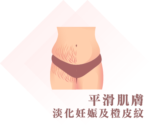 - 針對妊娠紋:射頻能量刺激斷裂的膠原纖維重新增生,填補紋路凹陷處,同時超聲波能量促進深層組織修復,讓紋路逐漸淡化、變淺、變短。