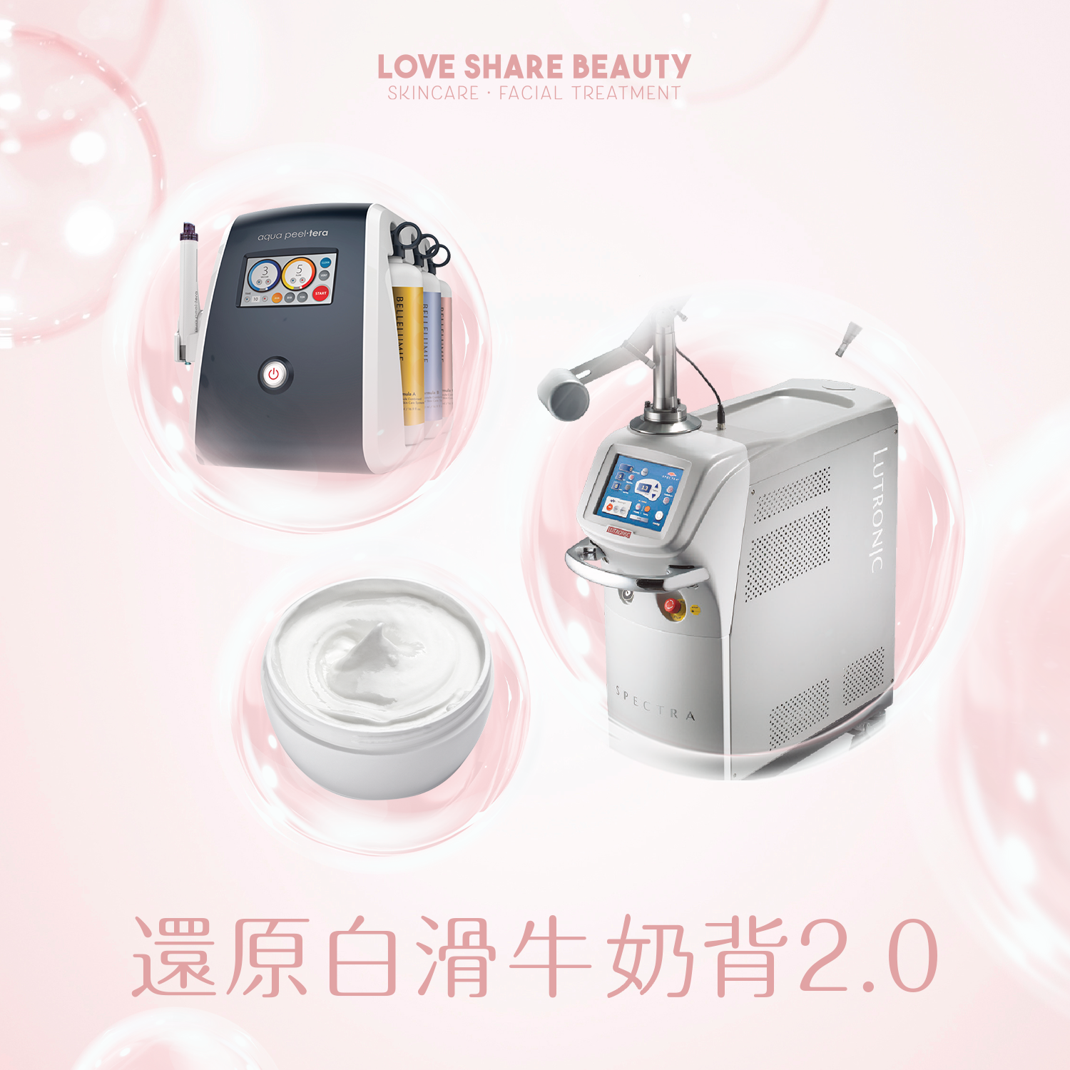 Love Share Beauty獨家設計了不同肌膚需要的組合療程,分成美白嫩膚、緊緻提升、暗瘡毛孔、肌底活化及身體組合療程。由頭到腳、由內而外貼心為你準備!