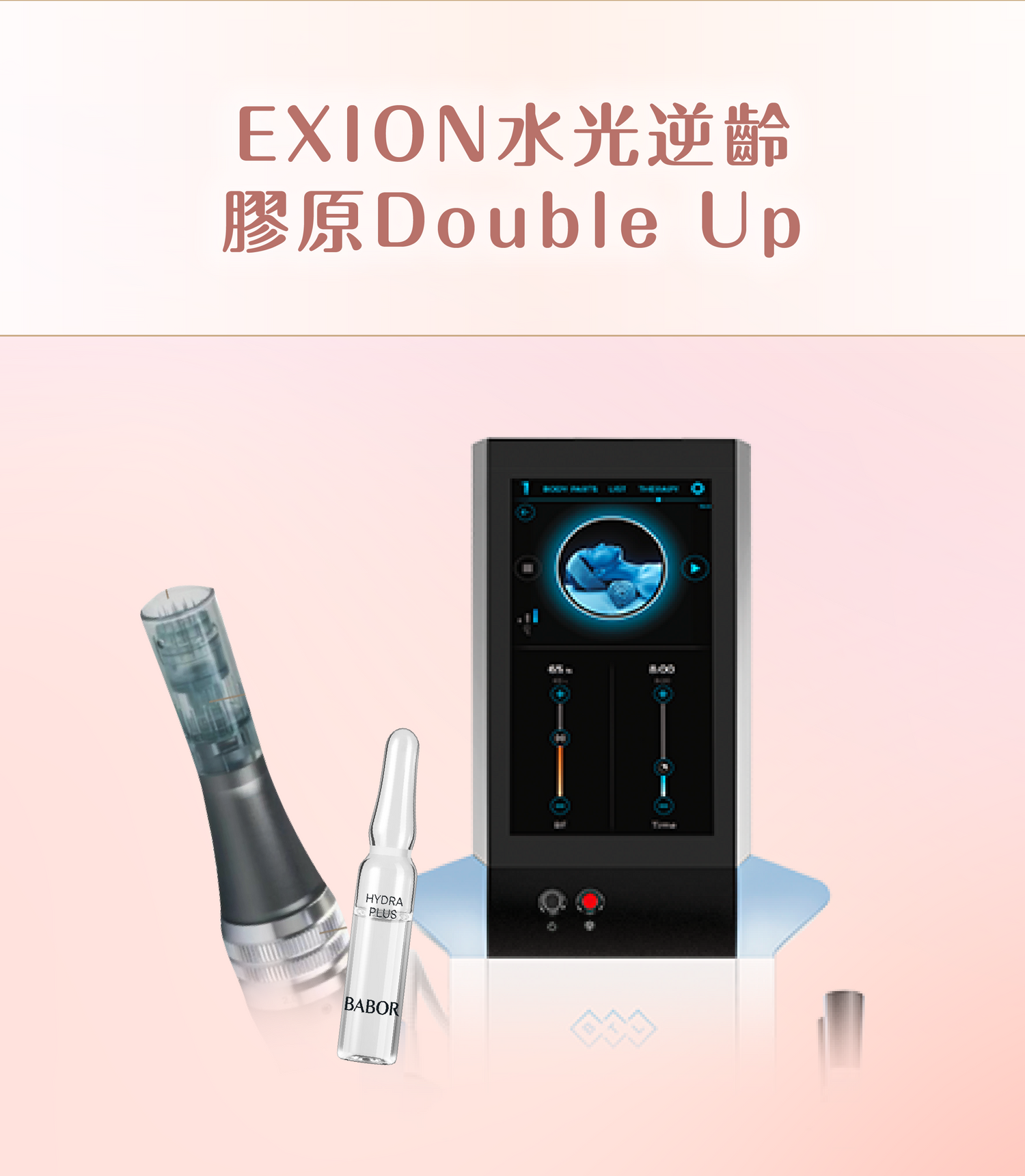 Love Share Beauty 呈獻最強保濕緊緻拍檔!針對膠原流失導致的鬆弛與細紋,先以 BTL Exion 水潤膠原槍透過單極射頻與超聲波,激發肌底透明質酸及膠原自生;再配合 JA 無針水光導入精華,利用無創滲透技術將高濃度修復精華直送肌底。雙管齊下改善乾紋、鬆弛及暗沉,讓肌膚由內而外恢復水感澎彈,重現緊緻透亮的少女水光感!