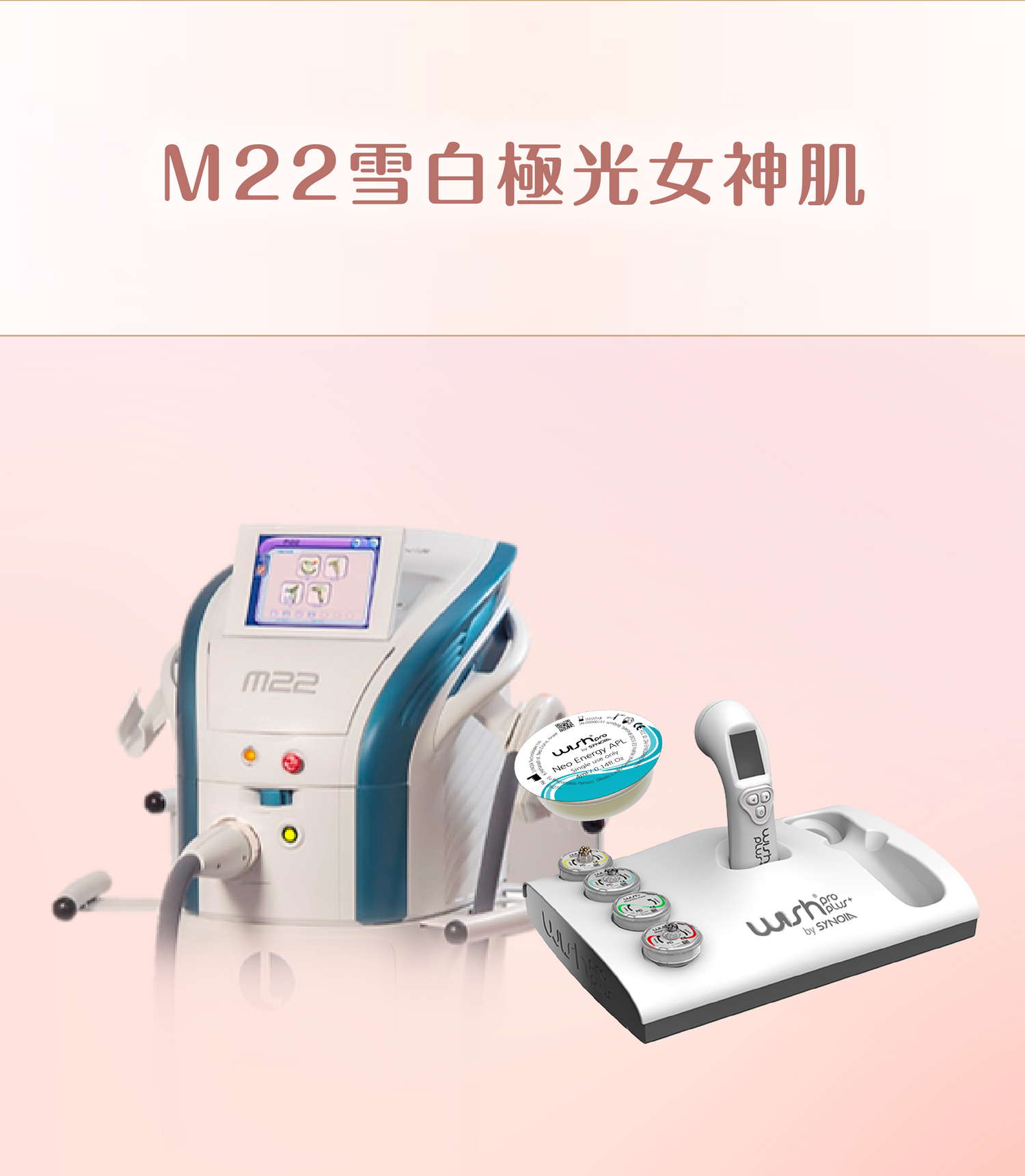 M22+Donut= M22雪白極光女神肌療程!M22以專利光能精準狙擊色斑、收細毛孔、刺激膠原再生;搭配Wishpro Donut獨特-10°C冰感技術,同步極速冷卻,告別激光灼熱不適。在零灼熱感的安全環境下,逐步撃退暗沉黃氣,讓肌膚如雪細緻白滑,綻放極光女神光澤。還原自信素顏美!