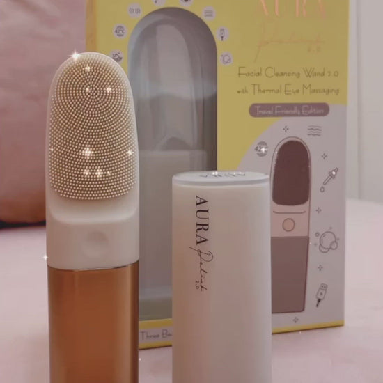 帶有眼部按摩功能的 Aura Polish 2.0 聲波潔面棒結合了Sonic Power(聲波功能)和 0.6mm柔軟矽膠刷毛的技術,為面部提供不傷皮膚的深層清潔。